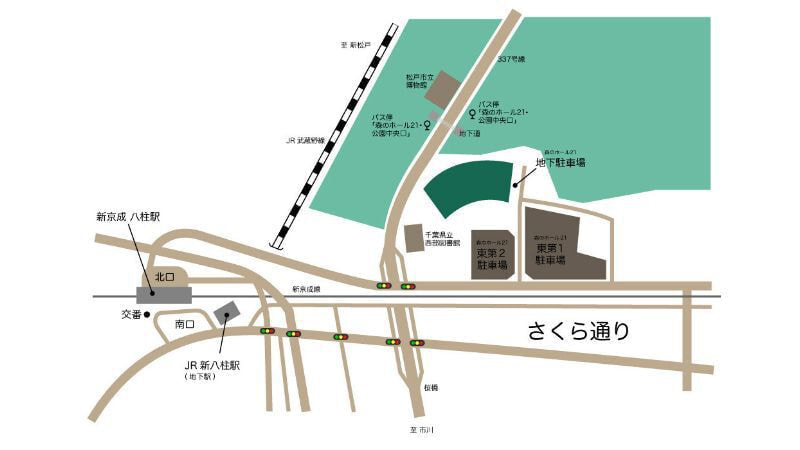 京成松戸線「八柱駅」南口・JR武蔵野線「新八柱駅」より、徒歩約15分